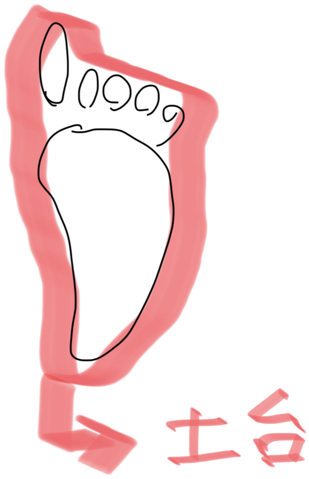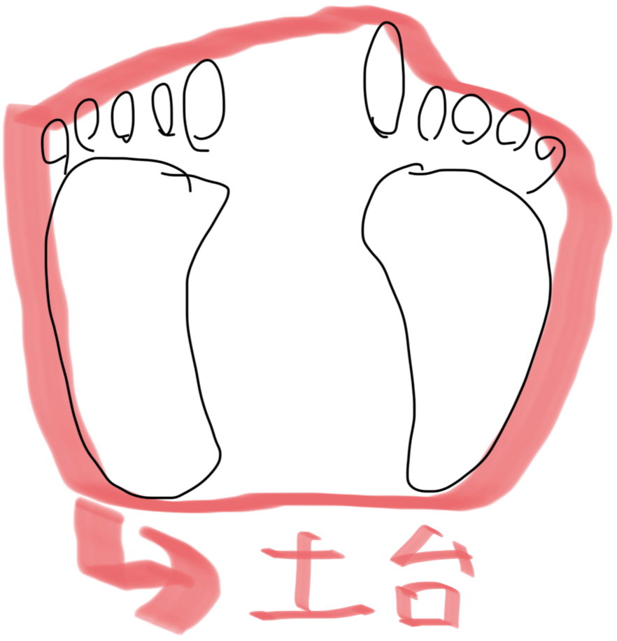 2本の足裏が床についていれば、2つの足を繋いだライン上も”土台”となることができます。